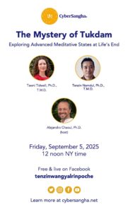 Join us for a special dialogue exploring tukdam, a rare meditative state described in Tibetan Buddhism and Bön. In tukdam, the body of a realized practitioner shows minimal signs of decomposition for days or even weeks after clinical death. This phenomenon is believed to reflect a profound mastery of meditation, merging consciousness with the Clear Light of the mind’s primordial nature.