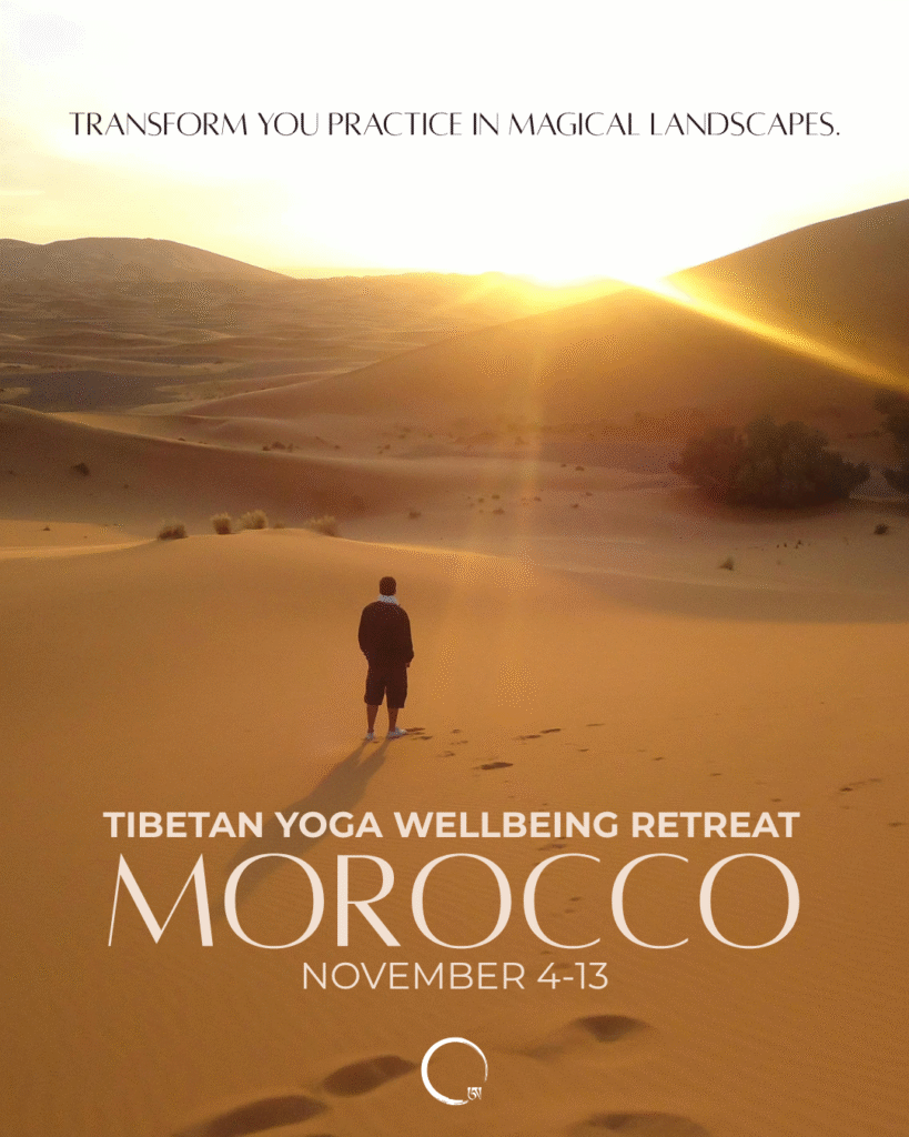 I’m excited to invite you to join me this November for a very special retreat in Morocco. Over 9 days, we’ll combine the deep inner stillness of Tibetan Yoga and meditation with the rich colors, textures, and culture of Morocco — from the medinas of Marrakech to the vast beauty of the Sahara Desert.